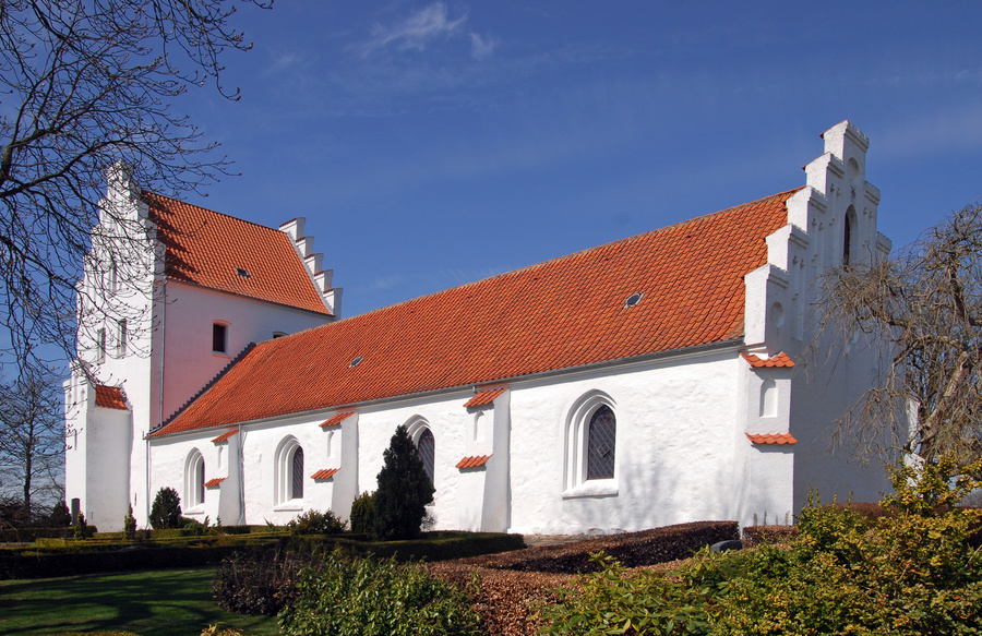 Midt i landsbyen Øster Skerninge ligger en af de kirker, der ikke råber højt – men som belønner den, der træder indenfor. Den hvidkalkede kirke fremstår som en klassisk gotisk langhusbygning, hvor de ældste dele er opført i kampesten, mens tårn og tilbygninger er i tegl.